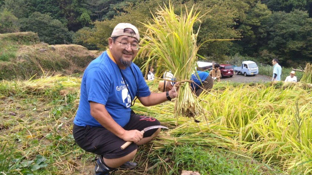 10月4日、石部棚田の稲刈りに参加しました。